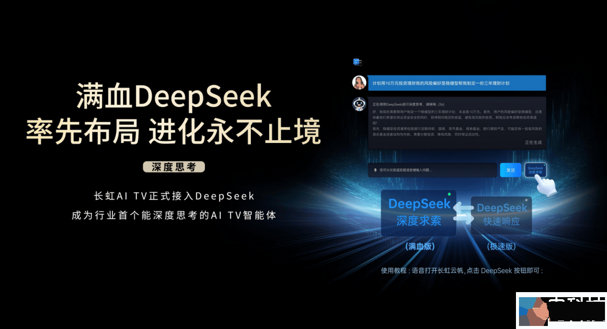 AI无处不在,小白无所不能。智能交互是长虹电视追光系列Q10Air的一大亮点,其搭载了行业首发沧海智能体,用一句话总结它的能力,就是你想知道的它都知道、你所需要的都能满足;它能实现超级搜索,解放你的双手、明白你的需求;它能实现人感交流,期间无须连续唤醒,就像跟朋友一样任意问、随便聊。它还能做到手机OTA一样的在线升级、实现持续进化,常用常更新,越用越好用,无最终形态。并且它也接入了满血版DeepSeek,成为行业首批能深度思考的AI TV智能体。