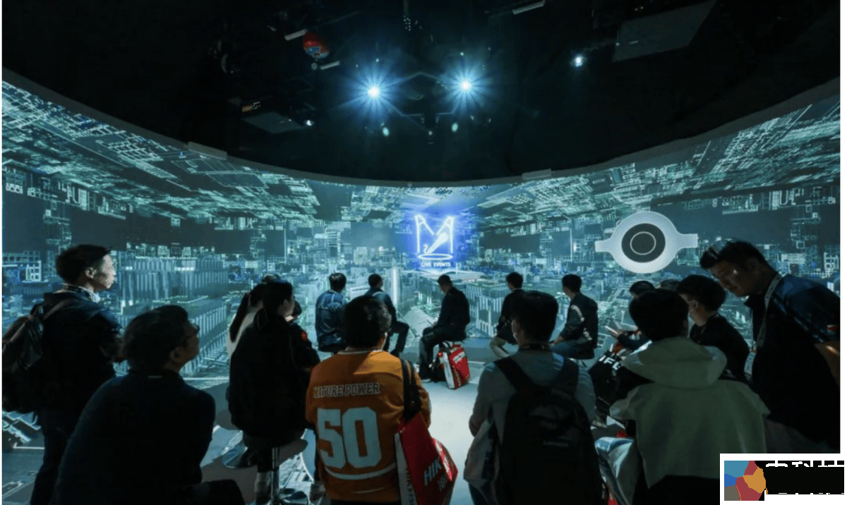 在“沉浸环宇”外墙上,2台巴可新一代3片DLP投影机QDX配合L型短焦镜头拼融投影弧形屏幕,画面宽7.2米,高2.65米,分辨率为6520×2400,即使在明亮的会场环境中,依然展现出惊艳的细腻度和卓越的色彩表现,画面流畅而逼真。