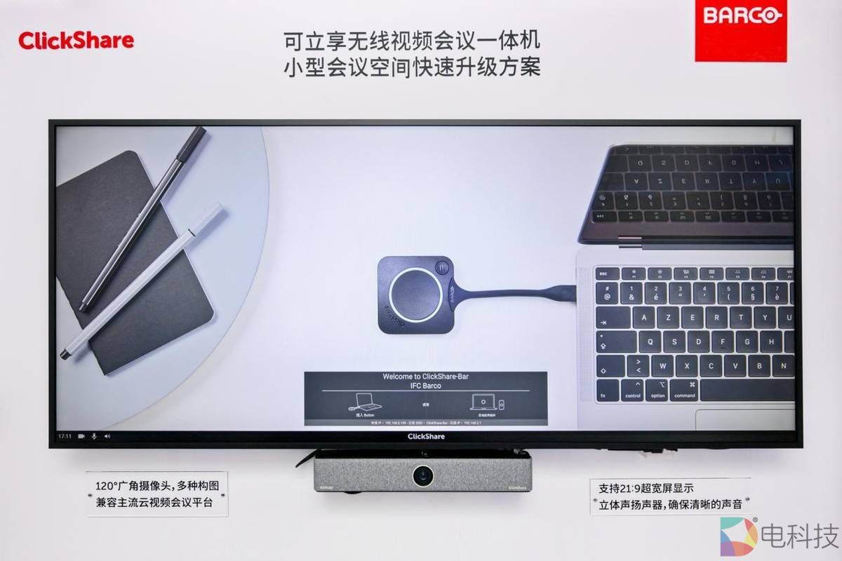 在本届展会上首秀的可立享无线会议屏,凭借一体化设计真正实现化繁为简,通过专业音视频技术实现高效沟通,无线BYOM使用更便捷,再加上灵活的扩展与稳健的品质,成为高端音视频会议室的理想选择。