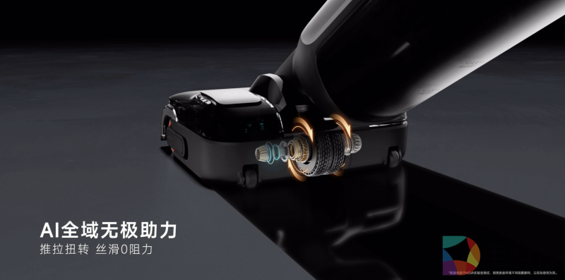 洗地机的助力技术长期停留在单向推拉辅助阶段,而M50 Ultra的AI全域无极助力通过航天级AI运动控制算法,实现了对用户操作意图的预判。其助力轮模块,通过算法实时感知,全向闪速调节可实时感知推拉、扭转的力度与方向,并实时分析和调整。例如,用户向左转弯时,算法提前补偿右侧轮组扭矩,消除传统洗地机的“惯性偏移”;面对不同地板的阻力差异,自动切换助力强度,确保全程“零手感差异”。这种“人机共融”的决策模式,让机器从被动响应升级为主动协同。