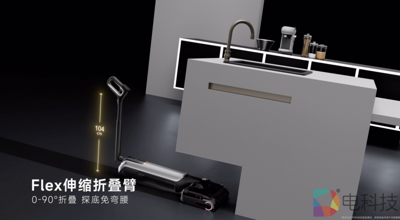 传统洗地机的手柄设计固化,清洁床底、沙发等低矮空间需用户弯腰操作。M50 Ultra的Flex伸缩折叠臂则通过仿生关节结构与黄金伸缩域设计,让机器辅助适配人体工学需求。手柄支持0-90°自由折叠与107mm长度调节,不同身高用户均可保持直立姿势完成全屋清洁。其底层逻辑是“场景-人体”的双重决策:当机身需要进入低矮空间时,可以一键伸缩手柄并启动“躺平模式”;清洁结束后,通过app反馈用户姿势数据,建议优化发力方式。这种设计不仅解放用户身体,更通过数据积累持续优化清洁动线。