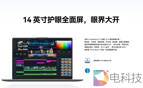 在显示规格上,全新Hi MateBook D系列屏幕分辨率达 1920x1200,比传统 1080P 屏幕像素数多11.1%,画面细节更加清晰,处理高清图片、数据图表,以及阅读文字较多的文档时,显示效果更好,并且屏幕具备100%sRGB 广色域和300nits亮度,色彩显示丰富准确,无论是处理图像、观看影片,还是专业绘图,都能呈现出真实的色彩。而且,防眩光设计有效减少了强光、逆光下的反光,即使在复杂光线环境中办公,也不会因屏幕反光影响使用。
