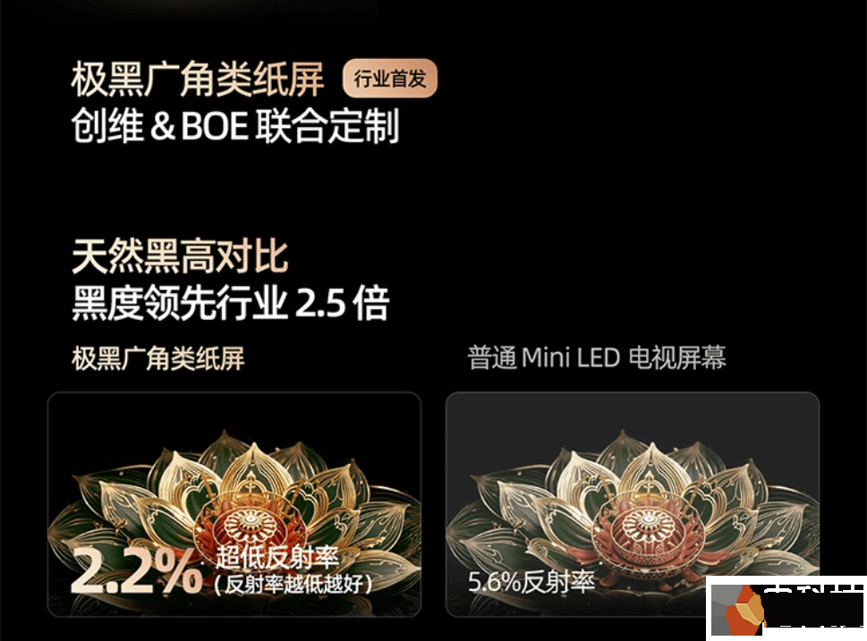 2. 画质的全链路优化:实现高画质,屏体是关键。创维A6F Pro的突破,正是始于搭载的行业首发极黑广角类纸屏。LR减反层可以拥有OLED一样的深邃黑场,STW全视角补偿层可以实现全视角不偏色,AG25防眩层能够在灯光明亮的屋内依旧呈现极黑高对比,这也是行业首次将LR减反层、STW全视角补偿层、AG防眩层三大核心技术融为一体,彻底解决传统屏幕的眩光与暗场细节缺失问题。硬件之外,创维以全链路AI光晕控制技术构建技术护城河,拥有同价位高规格的背光方案和最好的画质芯片,从电源驱动、背光结构到算法策略进行了全方位创新优化。