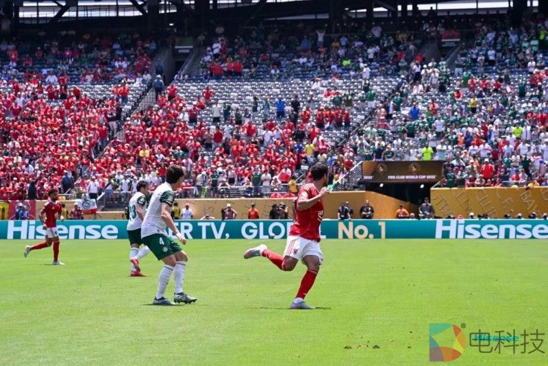 2025年国际足联俱乐部世界杯(下称“世俱杯”)赛场边的围挡上,熟悉的那抹海信绿,再次带着“第一”字眼的标语,硬控全球球迷的注意力。