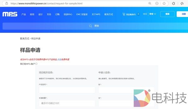可登录MPS中文官网,点击联系方式—样品申请,免费申请MPS产品样品。