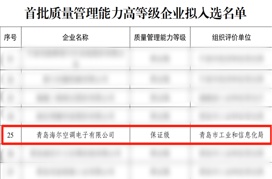 近日,国家工业和信息化部发布首批质量管理能力高等级企业名单,海尔智慧楼宇成功入选。