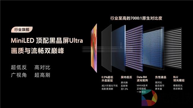 不仅如此,黑晶屏Ultra还具备178°超广视角,彻底攻克了大视角下画面泛白、变色的难题。其呈现的画面立体感远超普通屏幕,无论正前还是侧面,都能收获同样完美观看体验。这得益于独有的纳米级光学结构精密调控,确保光线均匀发散,以极致观感让每个角度都是最佳观赏位。