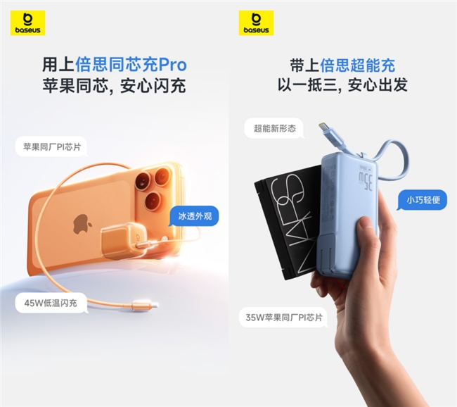 近年来iPhone支持的快充速率不断提升,最新发布的17系列仅需20分钟即可充至50%,然而自iPhone 12系列不再随附充电器以来,用户不得不自行选购充电产品。出于产品颜值、充电速率等需求,第三方充电器越发受到果粉的追捧,倍思在前不久也推出全新的45W充电器新品——倍思同芯充Pro。这款充电器同样搭载了苹果同厂PI芯片,不仅全面适配iPhone 17系列快充功率,还能智能识别设备、动态调整输出,更好地保护电池健康。在散热方面,倍思同芯充Pro搭载了最新的气动涟漪散热微结构与石墨烯、高分子硅基等散热材料,配合每秒2000次的温度监测,充电安全性与稳定性显著提升。在今年iPhone17 Pro正式发布之后,倍思也在第一时间上新了同色系的充电器版本,为果粉带来“同芯、同色、同速”的顶配快充体验。
