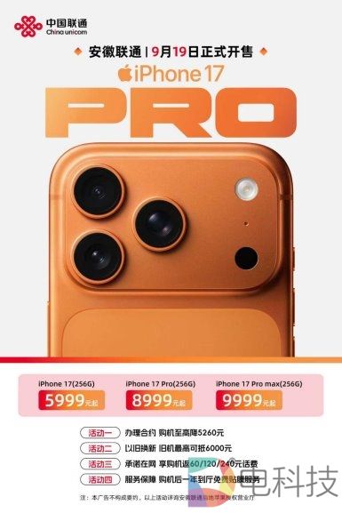 四是专属保养免费贴膜:凡在安徽联通购买iPhone 17系列,可享一年内免费到厅贴膜服务,贴心呵护你的爱机。