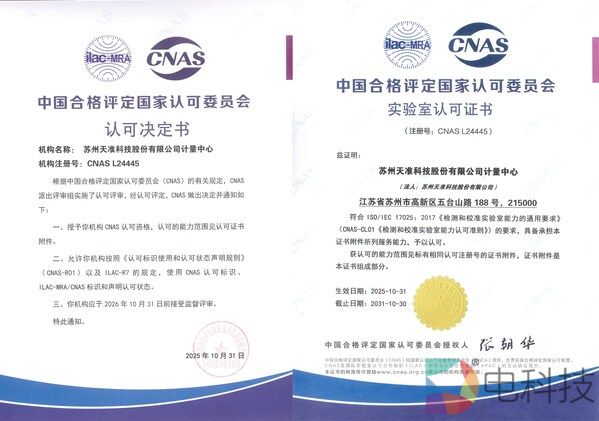 近日,苏州天准科技股份有限公司计量中心通过中国合格评定国家认可委员会(CNAS)评审,正式获颁实验室认可证书(注册号:CNAS L24445)。这标志着天准计量中心的技术实力与质量管
