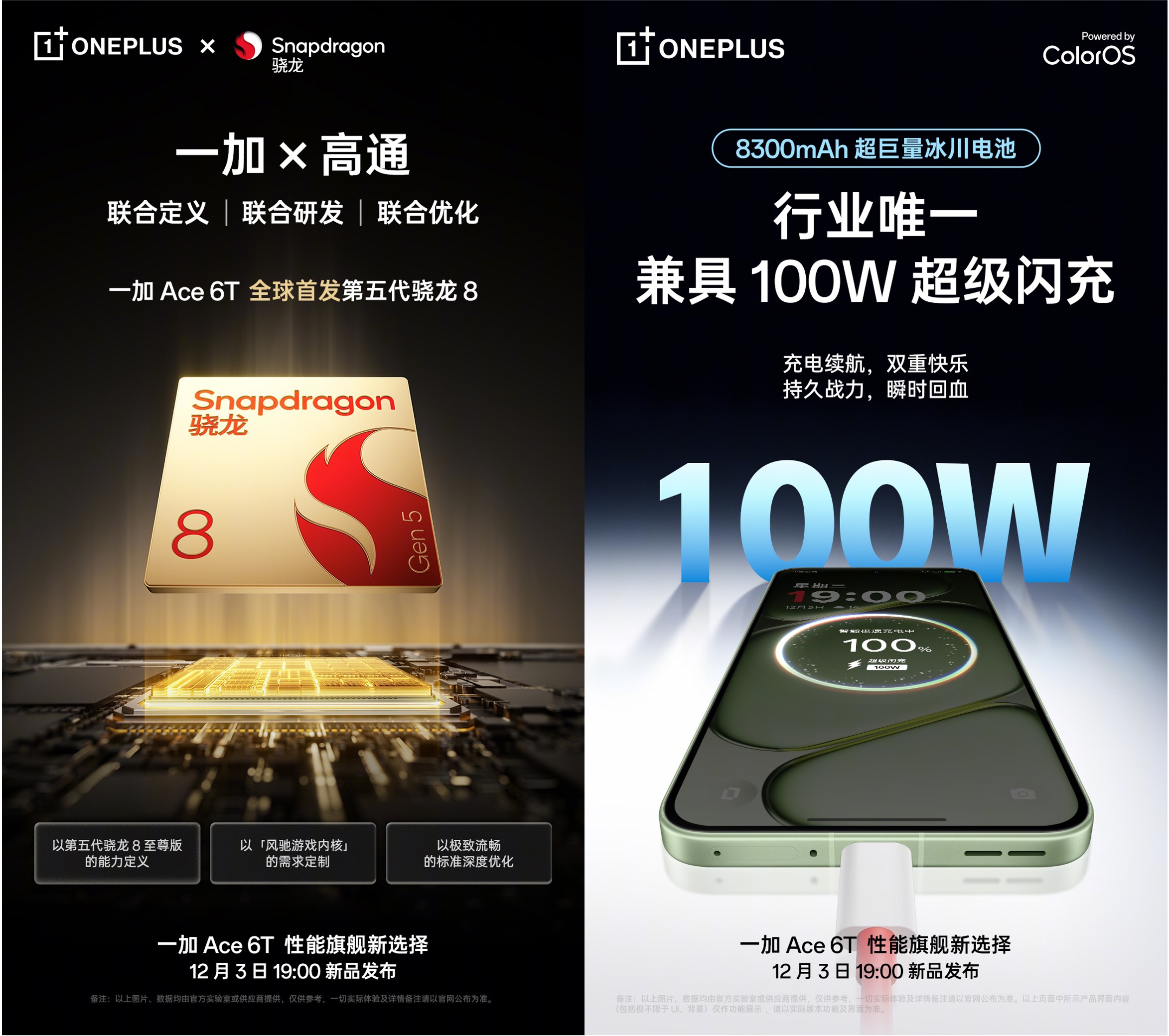 核心配置上,一加 Ace 6T原神神里绫华定制机与一加 Ace 6T拥有同样全面旗舰的硬核配置。一加 Ace 6T全球首发搭载第五代骁龙8移动平台,配合写入芯片底层的自研「风驰游戏内核」与全面升级的「冰河散热系统」,性能位列行业第一梯队,是同档唯一支持原生165 高帧游戏的性能旗舰。续航方面,一加 Ace 6T配备8300mAh超巨量冰川电池加100W超级闪充,全面保障了游戏与日常使用的续航需求,是行业唯一同时兼具8300mAh电池和百瓦闪充的手机,实力出众。一加 Ace 6T还配备165Hz超高刷电竞屏,搭载5000万像素索尼超光影主摄以及全新ColorOS 16系统,支持IP66/68/69/69K满级防尘防水,配置全面,诚意十足。目前一加 Ace 6T已全面开启新品预约,参与活动可解锁专属好礼。