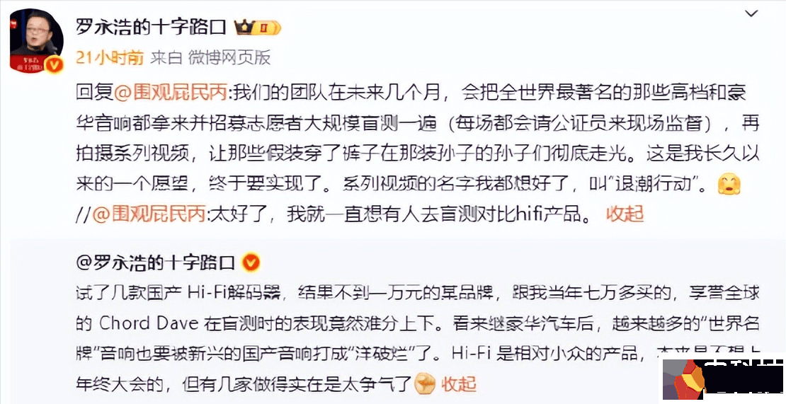 罗永浩炮轰麦景图音响,称其是“这辈子见过最坑人的豪华音响品牌”。