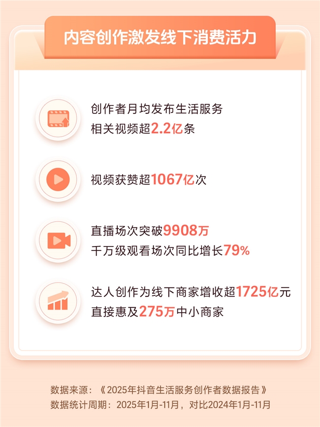 近日,《2025年抖音生活服务创作者数据报告》(以下简称"报告")发布。报告显示,平台上生活服务相关内容生态持续繁荣,已成为连接线上流量和线下消费的重要桥梁。
