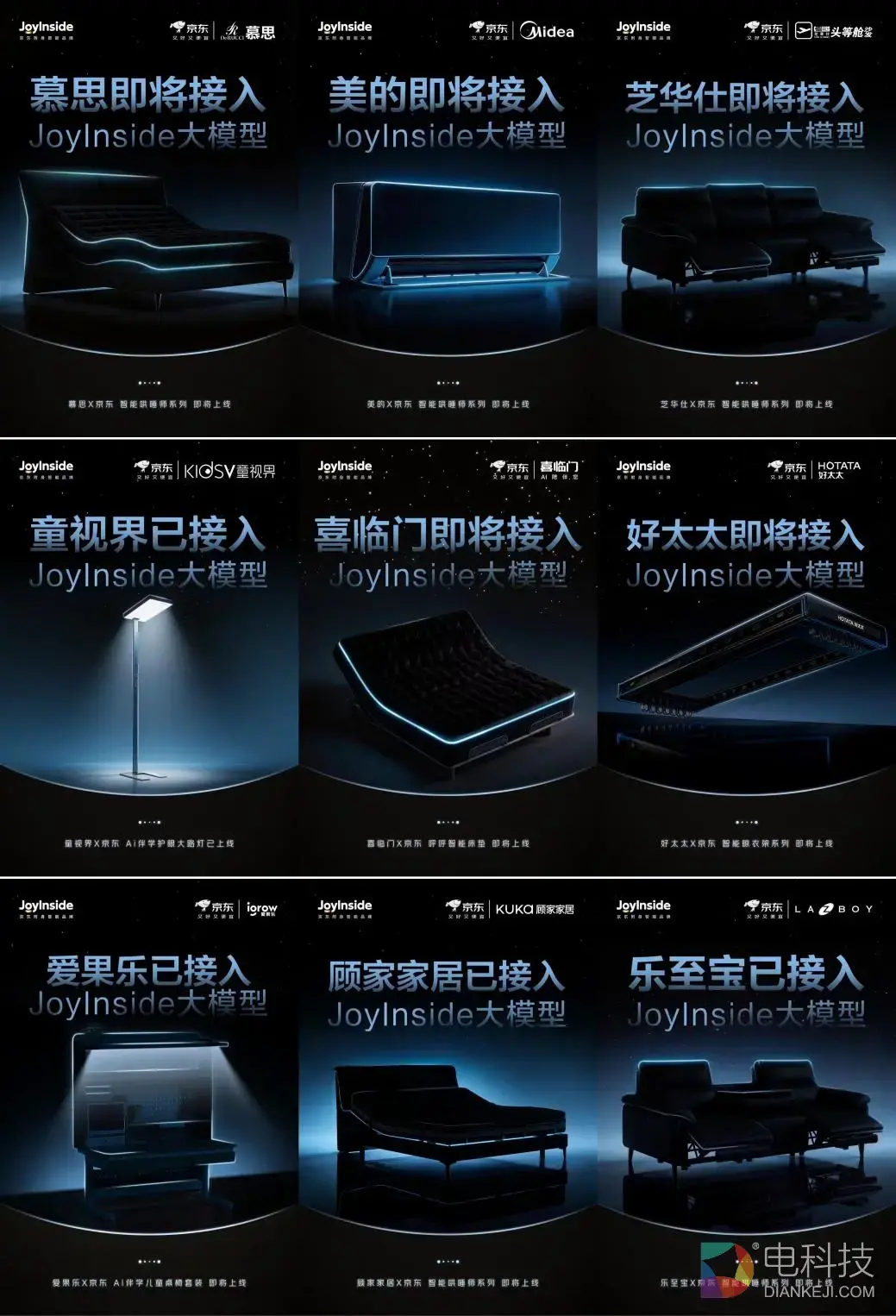 在品牌合作方面,京东此次联合慕思、喜临门、舒福德、舒达、8H、菠萝斑马、顾家、芝华仕、乐至宝、美的、童视界等20余家品牌,共同进行“智能哄睡师系列”新品的研发与共建。目前,已有近30款接入JoyInside大模型的品牌新品在加速研发推进中,并将于今年4月至5月期间陆续上线京东开启预售。