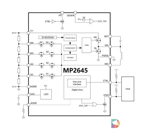 此外,基于MP2645打造的52s储能主动均衡解决方案,采用MPS特有的创新拓扑结构与安全冗余架构设计,可实现数字级联通讯,支持实时控制和状态查询。外围器件精简,助力降低方案体积与成本。