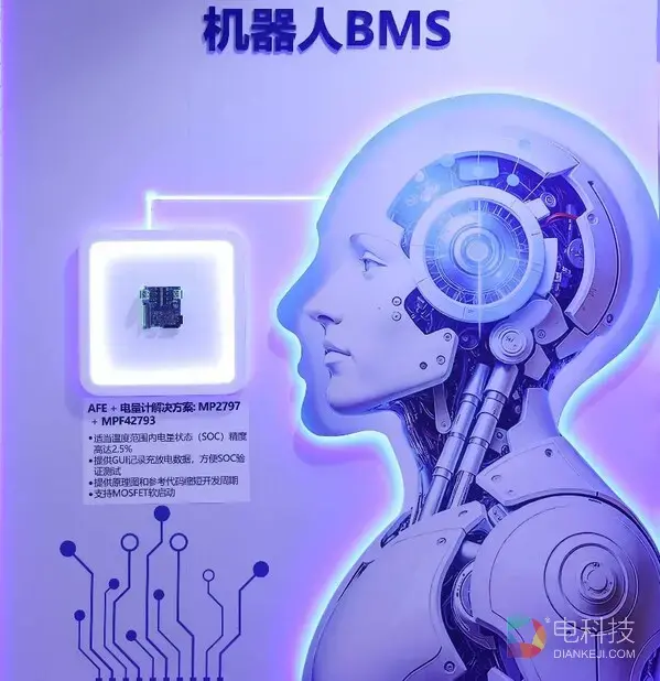 MPS重点展示了面向家庭储能系统的完整电池管理方案,涵盖电池监控和保护器、主动均衡、电量计以及DC/DC功率变换模块等关键技术,通过高度集成的方案帮助客户提升系统效率并简化设计复杂度。MPS在现场展示了适用于机器人电池的AFE + 电量计解决方案,搭配了电池监控和保护芯片MP2797与电量计MPF42793,该方案适当温度范围内电量状态(SOC)精度高达2.5%,可为机器人系统提供稳定可靠的能源管理能力,帮助设备在复杂工况下实现高效运行。