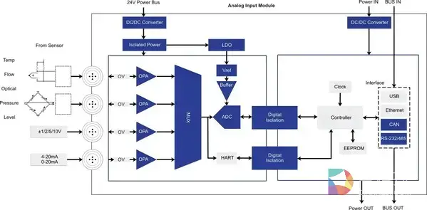 在PLC/DCS系统中,模拟量采集是连接现场物理信号与数字控制的核心环节,负责将温度、压力等连续变化的信号精准转换为数字量,其精度直接决定了整个控制系统的调节质量与决策可靠性。在模拟量输入模块上,思瑞浦提供多款高精度ADC和模拟前端芯片,满足±1/2/5/10V电压信号、±20mA,4~20mA电流信号场景下的输入信号采集需求。