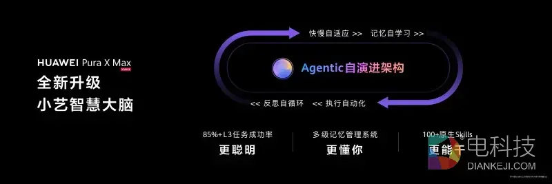 伴随式AI体验跃迁的背后,是底层能力重构、全新升级的小艺智慧大脑。基于小艺Agentic 自演进架构,小艺智慧大脑能够完成快慢思考融合,记忆与自主学习,反思与进化。这意味着,小艺能够结合用户状态、场景与目标,在长期使用中不断学习、反思、优化和执行,带来更因人而异、更贴合场景、也更能把事情做成的智能体验,让智能设备会主动思考、能自主进化,越用越聪明,越用越贴心。