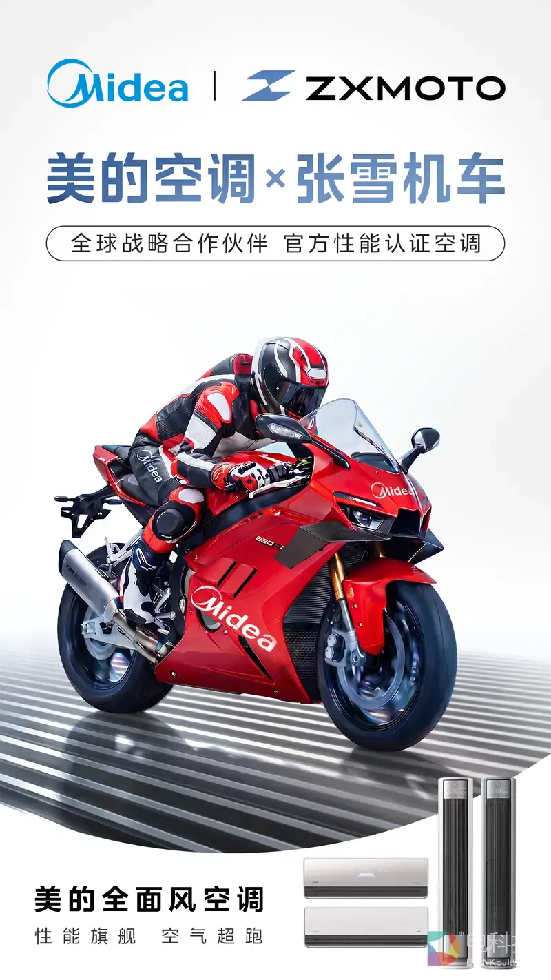 此刻,这两条路径开始交汇——美的空调与张雪机车正式达成全球战略合作。一个来自家庭,一个来自赛道,两种不同场景中的“破局者”,在同一时间选择并肩而立。
