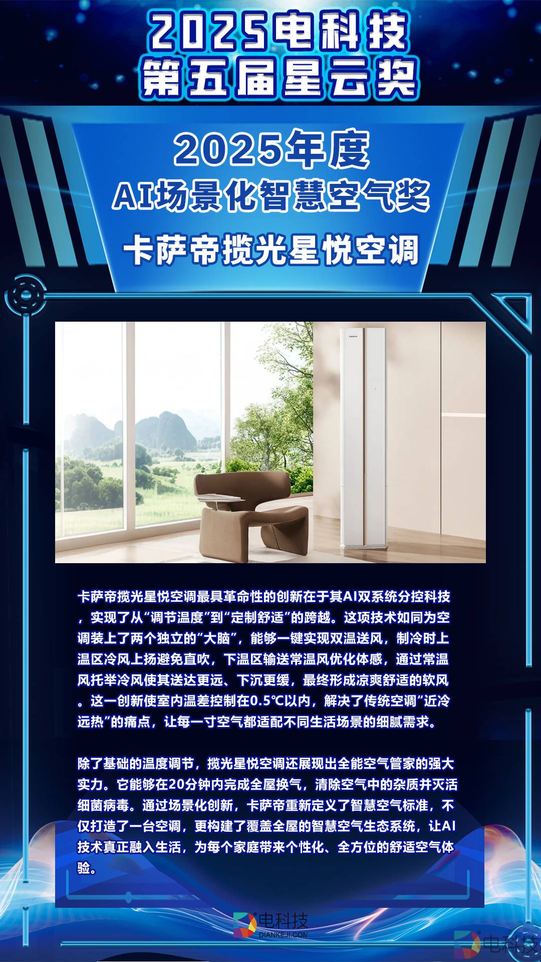 除了基础的温度调节,揽光星悦空调还展现出全能空气管家的强大实力。它能够在20分钟内完成全屋换气,清除空气中的杂质并灭活细菌病毒。通过场景化创新,卡萨帝重新定义了智慧空气标准,不仅打造了一台空调,更构建了覆盖全屋的智慧空气生态系统,让AI技术真正融入生活,为每个家庭带来个性化、全方位的舒适空气体验。