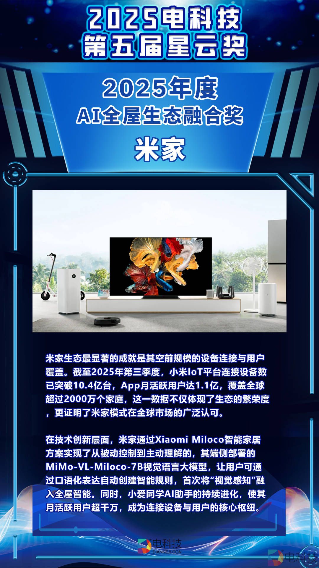 在技术创新层面,米家通过Xiaomi Miloco智能家居方案实现了从被动控制到主动理解的,其端侧部署的MiMo-VL-Miloco-7B视觉语言大模型,让用户可通过口语化表达自动创建智能规则,首次将“视觉感知”融入全屋智能。同时,小爱同学AI助手的持续进化,使其月活跃用户超千万,成为连接设备与用户的核心枢纽。