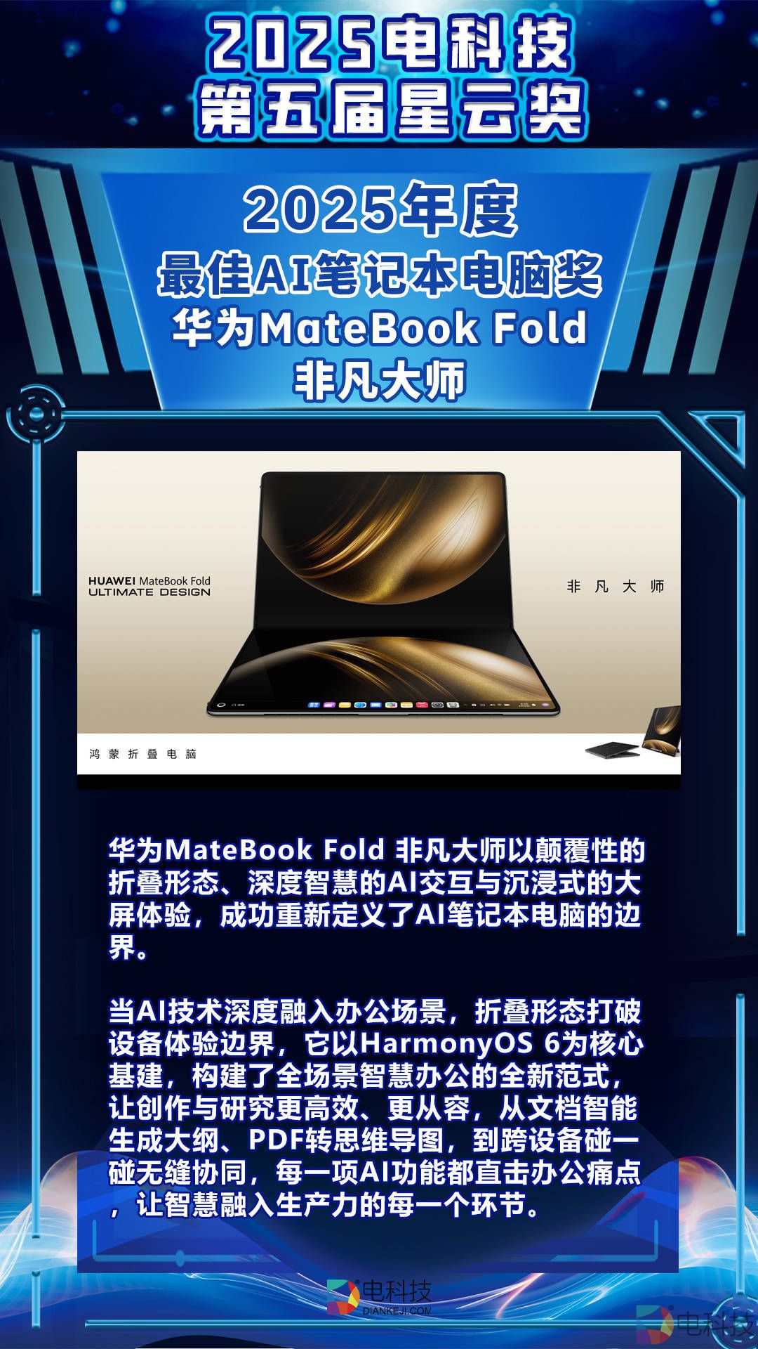 华为MateBook Fold 非凡大师以颠覆性的折叠形态、深度智慧的AI交互与沉浸式的大屏体验,成功重新定义了AI笔记本电脑的边界。
