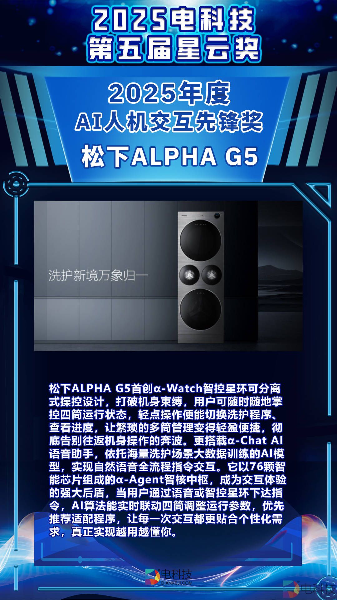 松下ALPHA G5首创α-Watch智控星环可分离式操控设计,打破机身束缚,用户可随时随地掌控四筒运行状态,轻点操作便能切换洗护程序、查看进度,让繁琐的多筒管理变得轻盈便捷,彻底告别往返机身操作的奔波。更搭载α-Chat AI语音助手,依托海量洗护场景大数据训练的AI模型,实现自然语音全流程指令交互。它以76颗智能芯片组成的α-Agent智核中枢,成为交互体验的强大后盾,当用户通过语音或智控星环下达指令,AI算法能实时联动四筒调整运行参数,优先推荐适配程序,让每一次交互都更贴合个性化需求,真正实现越用越懂你。