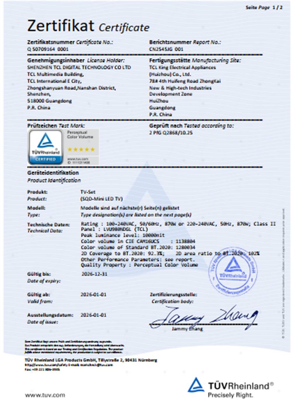 近日,在美国拉斯维加斯国际消费类电子产品展览会(CES 2026)上,TCL与德国莱茵TÜV一起发布了显示产品感知立体色域白皮书(电视产品色彩评价应用指南),特别针对电视产品领域,深入