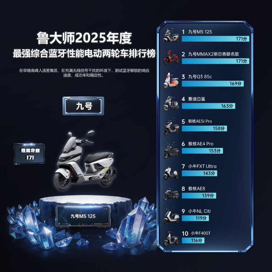 也正因其在智能互联层面的体系化优势,九号 M5 125 同时摘得“2025年度最强综合蓝牙性能电动两轮车”。其秒级连接、靠近自动唤醒与复杂信号环境下的稳定表现,让“一触即通”成为用户可感知的确定性体验。