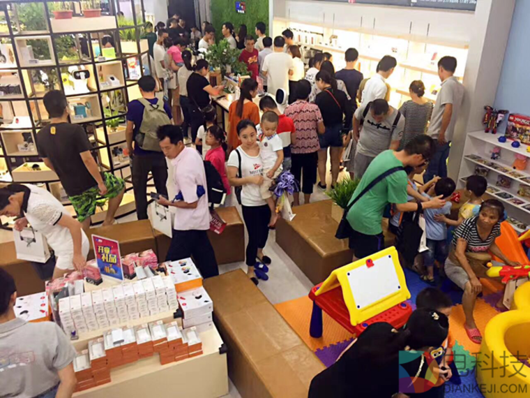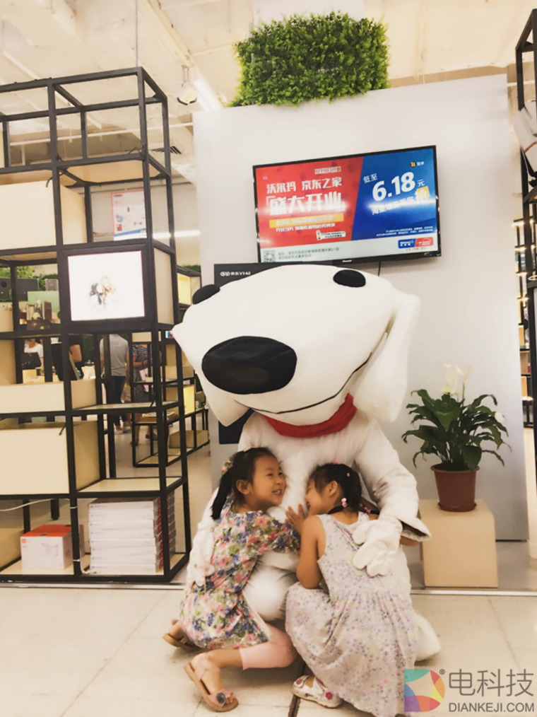 8月6日,京东之家北京通州万达广场店开业,200平米的店面内一上午就涌进近了2000人。顾客进店可以“刷脸”成为会员,了解到诸如“高冷天蝎”、“夜猫子”等针对自己偏好的趣味分析。复古的猫王收音机、炫酷的全面屏手机、叮咚智能音箱、极米的家用投影仪……不少精心陈列的商品让顾客爱不释手。店里还有图书角、儿童游乐区供人放松休憩,老人则可以体验眼部或肩背按摩器的功效。