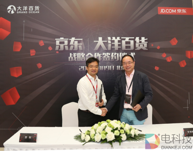 就在当天,京东集团副总裁、京东3C事业部总裁胡胜利与大洋百货签订合作协议。根据合作协议,双方将展开细致而深入的合作,涉及到线下门店、线上旗舰店、金融、物流和大数据等各个领域。双方约定,2017年9月底大洋百货首个京东之家正式开业运营,到今年年底后续几家京东之家也会陆续在大洋百货开业。大洋百货会扩展线上渠道,在京东商城开设“大洋百货京东商城旗舰店”,并与京东金融在消费金融与供应链金融上开展合作;大洋门店和京东物流也将联手带来配送效率的飞升。