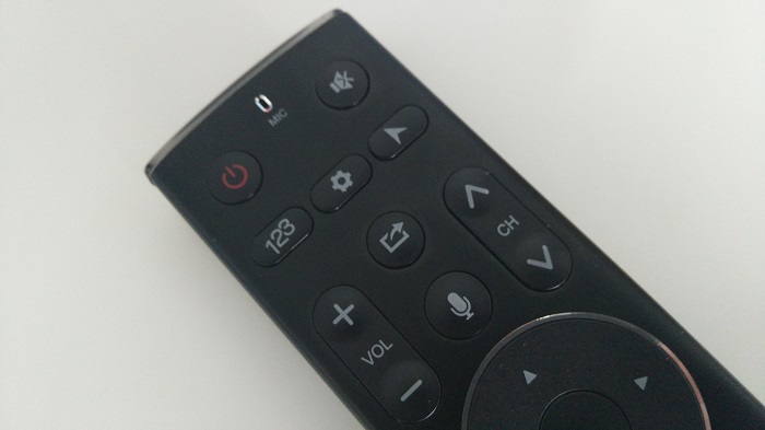 虽然取消了并不好用的触摸板,但遥控器上的语音功能还是没有确实,配备有独立的语音按键,而在遥控器顶端也具有MIC拾音孔。