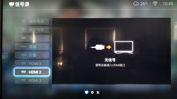 系统主界面采用磁贴式的设计风格,左右滑动分别可以进入信号源和应用界面。