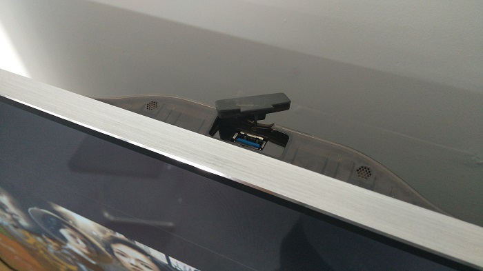 乐视X55顶部的USB接口主要用于连接摄像头等外设配件,其蓝色的配色暗示着其具备USB3.0的高速传输速率。