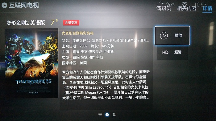可是需要注意的是,系统中的4K专区提供的并不全部是4K内容,比如我们试看的《变形金刚2》最高只能提供1080P全高清的清晰度,而所有清晰度都需要用户成为VIP之后才能享受,服务费这一项产品支出,显得必不可少。
