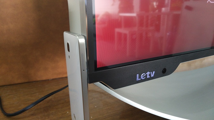 会发光的Letv标识被放置在了机器的左下角,标识右侧,安排有一个圆形的遥控器信号接收区域。