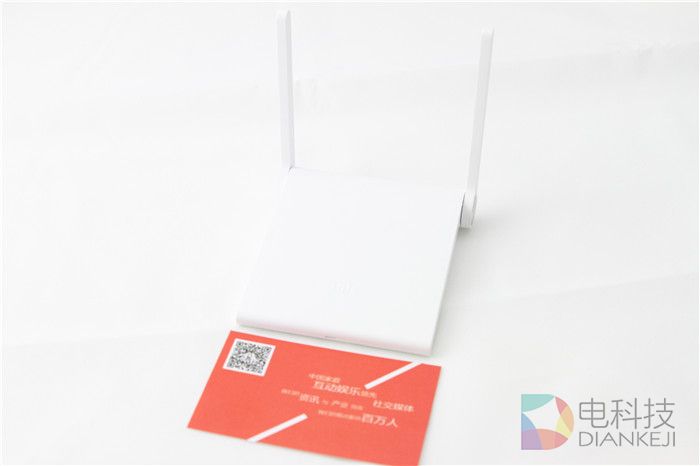 小米路由器青春版的宽度比一张名片还要小,便携性良好。