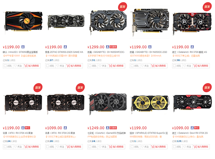 现在GTX 950和R9 370X显卡主要集中在1099元至1299元价位上