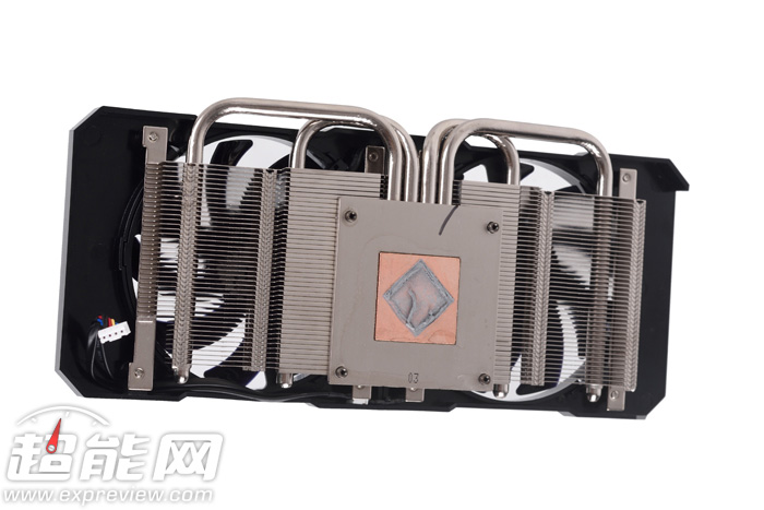 显卡采用的是讯景自行开发的酷魂三代散热系统,配置有纯铜底座和4条6mm镀镍纯铜热管,以回流焊的方式与铝制鳍片结合,鳍片间则采用扣Fin处理,散热器配置有两个9cm静音风扇,并采用了易拆洗技术,捏住风扇两边的卡扣即可将其轻松拆下进行清洗。