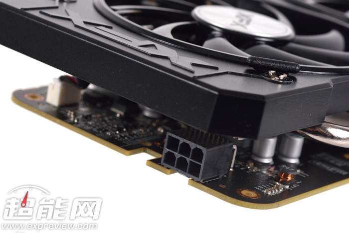 据讯景表示,R9 370X魔尊版显卡的TDP仅为130W,因此它只需要一个6pin外接供电接口即可保持稳定工作,同时这个6pin接口采用了反向设计,即卡扣是朝外的,这样可以避免外接电源线与散热导风罩相互冲突,是一个比较人性化的设计。