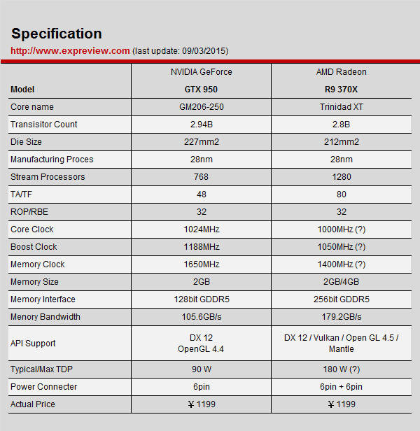 在千元级市场的竞争中,NVIDIA的GTX 950显卡击败了AMD的R9 370显卡,不过AMD迅速祭出了R9 370X显卡用于还击,后者已经在性能上追平甚至超过GTX 950显卡。
