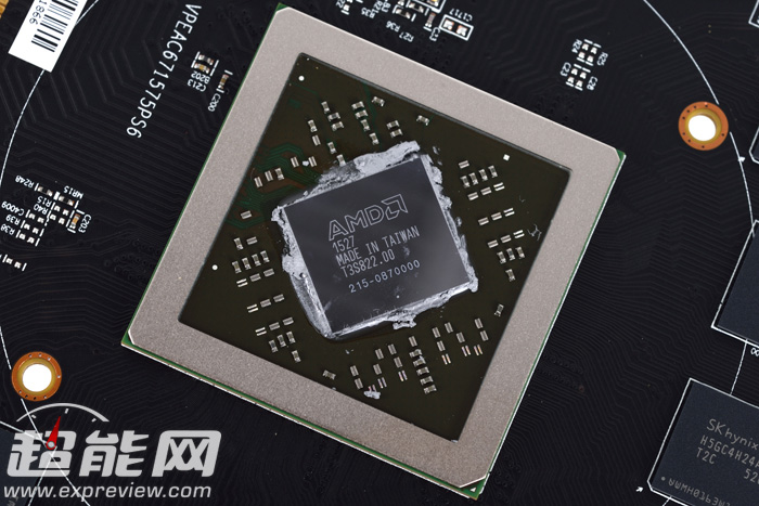 显存为SK海力士的GDDR5颗粒,单颗容量512MB,8颗共计4GB总容量