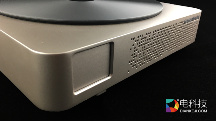 机身主体为金属材质,极具质感。“黑胶唱片”上部的发光标志也是亮闪闪的金属设计,细节之处诚意尽显。