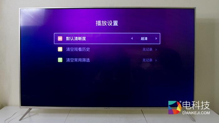 对于在线内容,风行电视支持预先在设置菜单选择清晰度,如果你对家里的网速够自信,直接将所以内容预设到超清,自然是一个方便的功能。