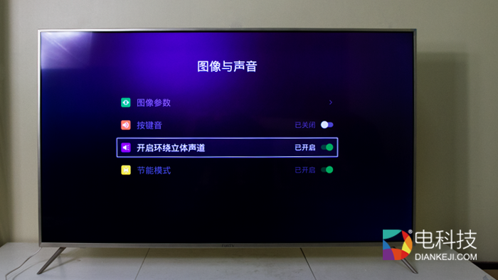 在图像和声音设置中,用户可以自定义屏幕的显示风格,值得注意的是,风行电视在初始状态下,环绕立体声道是关闭的状态,为了达到更好的试听感受,还是建议用户能够自行开启。