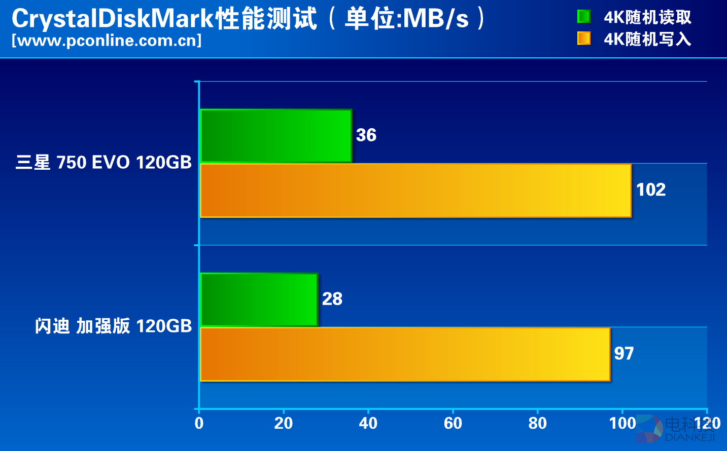 通过对比可以看出,三星750 EVO 120GB采用了三星NAND闪存,而闪迪加强版120G采用了MLC NAND,但是因为主控关系,缺乏了缓存,这导致了理论性能上三星750 EVO 120GB更加好。同样是三年保修,至于两者价格,SanDisk的便宜一些。那么实际测试成绩如何呢?