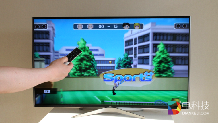 对于电视游戏环节,体感遥控器更是一把操控利器,TCL L55C1-CUD中可以下载的轻松网球等游戏,在操作手感上完全达到了体感游戏主机Wii的级别,游戏流畅度超出我们对电视的预期。