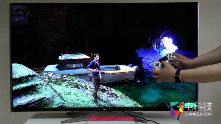 曲面电视最大的优势自然在于观看的沉浸感比传统形态的平板电视更胜一筹,在某一特殊位置上,屏幕水平方向上的每一个点距离观看者眼球的距离相等,这虽然看起来不大符合电视多人分享的需要,但对游戏玩家来说绝对是一大福音,例如近期大热的主机游戏《神秘海域4》,把PS4主机连上TCL L55C1-CUD,呈现在玩家眼前的是便一幅更身临其境的风景画。