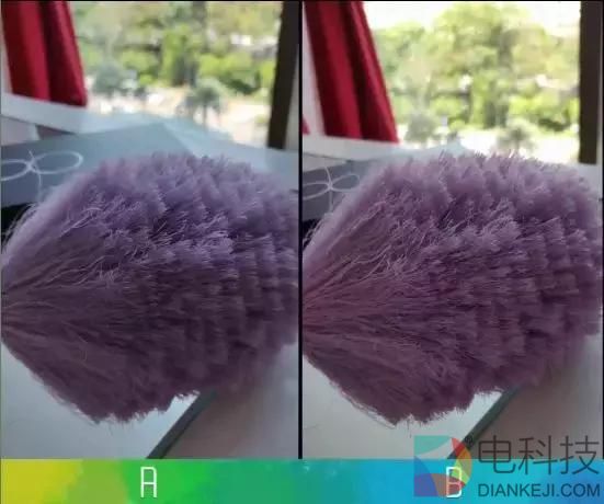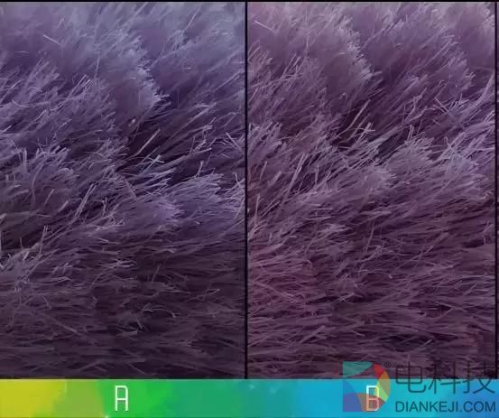 第四组照片中,可以看到A比B的颜色要更亮些,同时人物的牛仔裤也不一样的颜色,以及沙发的颜色,桌子的颜色,甚至地板的颜色都能感觉到差异。放大之后,B和A你肯定也能感觉到明显的颜色差别吧?你觉得哪个更自然呢?