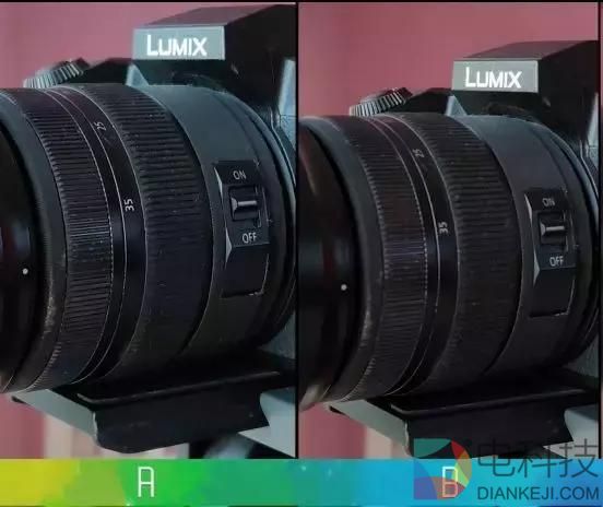 第二组照片在未放大的情况下,A比B更暗;放到之后,A要丢失很多细节比B更模糊。